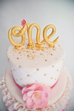 ![]() Like a pretty dress, this pink ombre ruffled dress and pin cushion top marry marry the gold cultural colour traditions and contemporary aesthetics. | ![]() Like a belt, a simple solitary flower and ribbon band the two tiers together. | ![]() Another angled view |